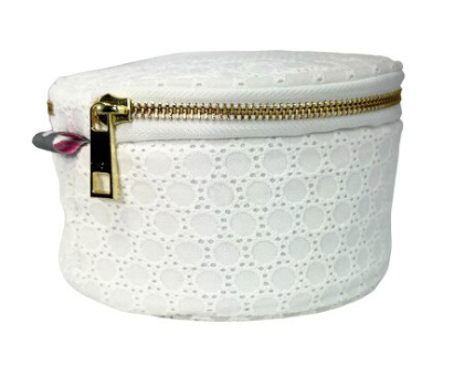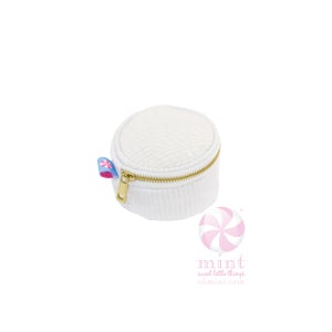 The Button Bags are cute as can be! This little cutie is lined with little open pockets for jewelry or makeup. Sweet little gift for every age! Two sizes include are: 6" diameter by 3.5" h